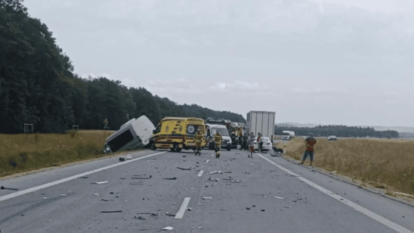 Dramatyczny wypadek wydarzył się na drodze krajowej numer 46. Bus przewożący 13-cioro dzieci i pięcioro opiekunów zderzył się z trzema samochodami osobowymi. Jedna osoba nie żyje, na trasie są utrudniania.