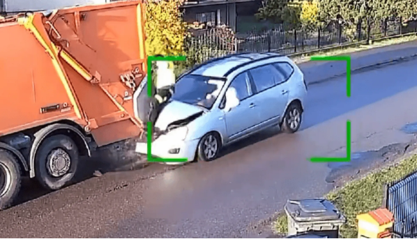 Do sieci błyskawicznie trafił zapis z kamery monitoringu zamontowanej przy jednej z posesji. Materiał udostępnił znany kanał na Youtube “Bandyci Drogowi”. Widać na nim, jak samochód osobowy powoli zbliża się do stojącej śmieciarki.