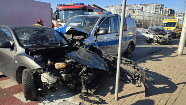 Na opublikowanych zdjęciach z miejsca wypadku widać, że pojazdy, które uczestniczyły w zderzeniu, zostały poważnie uszkodzone. Radiowóz policyjny uderzył w bok mazdy, co sugeruje, że kierujący pojazdem mógł nie ustąpić pierwszeństwa jadącym na interwencję funkcjonariuszom, a następnie w unieruchomionego na skrzyżowaniu volkswagena uderzyło auto marki toyota.