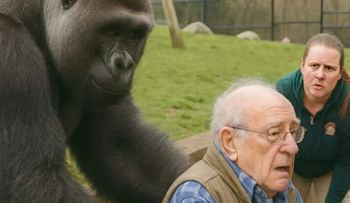Замість того, щоб атакувати, горила зробила щось зовсім несподіване — вона повільно підійшла до старого, ніжно обійняла його, притягнула до себе і почала ніжно колисати, як дитину.