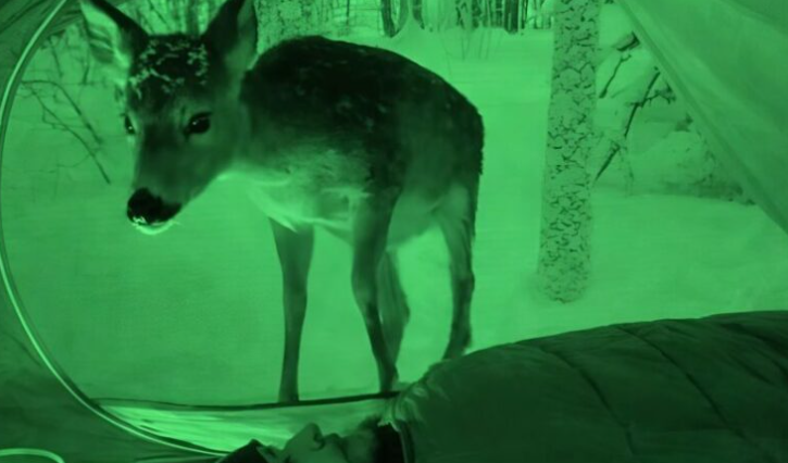 З цікавості я вирішив встановити камеру нічного бачення, щоб побачити, що відбувається навколо мене, поки я сплю в наметі посеред лісу; вночі оленятко залізло до мого намету — і те, що воно зробило, сповнило мене справжнім жахом